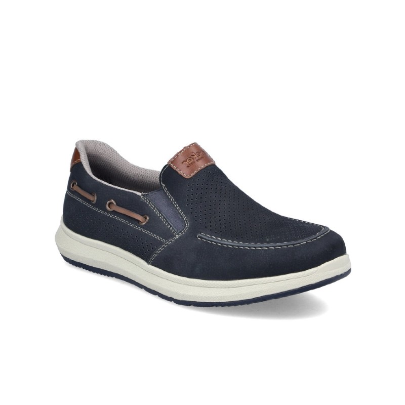 Step into relaxed, nautical-inspired style with the Rieker 16968 mens slip-on shoes, designed for effortless comfort and everyday wear. Crafted in an extra wide fitting, this shoe offers generous room and a comfortable feel, while double elastic gussets allow for easy on and off without compromising a secure fit. The lightweight upper features subtle punched-hole detailing, adding breathability and a classic maritime touch that complements a casual, laid-back look. Perfect for warm days and relaxed outings, the lightweight construction and flexible design ensure all-day comfort and easy movement.